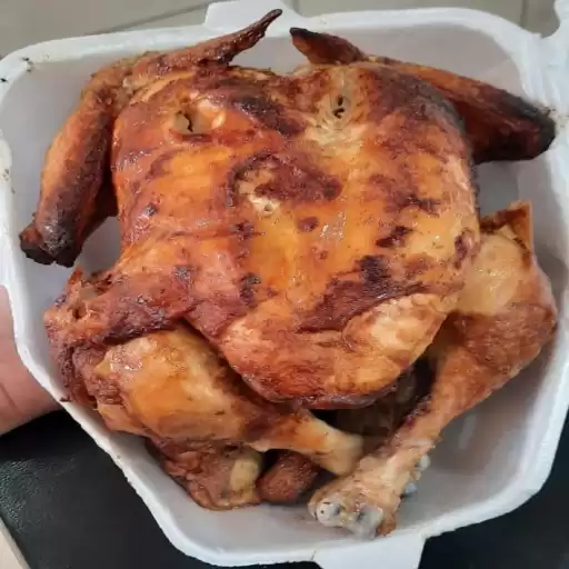 Frango assado na brasa (acompanha farofa de brinde)