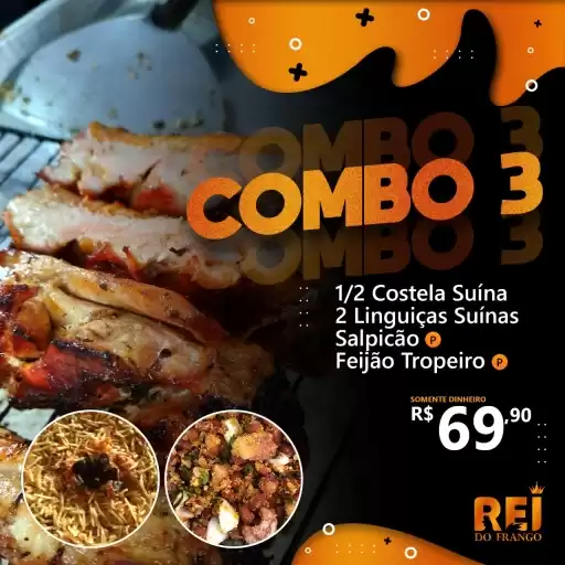 1 Frango Assado (Máquina/Brasa), Salpicão Cremoso G (600g) e 1 Feijão Tropeiro G (600g).